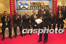新公司成立儀式上「新濠國際」董事總經理何猷龍(中)等為新公司祈福。 中新社記者:李剛
