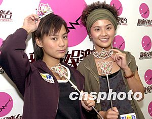 組圖:走紅組合TWINS的兩位歌手香港書展簽名 (2003-08-03 16:19:36)