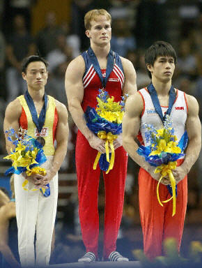 悉尼奧運(yùn)會(huì)銀牌得主、中國名將楊威是以資格賽第十的身份進(jìn)軍決賽的,由于在賽單杠和自由體操兩項(xiàng)出現(xiàn)明顯失誤,尤其是自由操出現(xiàn)了一個(gè)扣除0.7的大失誤,他的資格賽排名比較靠后。