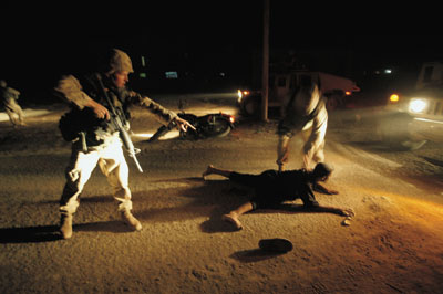 對(duì)美軍來說,另外一個(gè)重要的源是在巷戰(zhàn)中俘獲的伊拉克游擊分子。美國人會(huì)“蓄意”挑起沖突,請(qǐng)君入甕。譬如說,他們會(huì)將一輛沒有任何掩護(hù)的巡邏坦克開到可疑地區(qū)。伊拉克游擊分子見此“良機(jī)”,便會(huì)貿(mào)然出來行動(dòng)。坦克手鎖定伊拉克發(fā)動(dòng)進(jìn)攻的方位后,便迅速請(qǐng)求支援。美軍會(huì)包圍住整個(gè)街區(qū),特種分隊(duì)對(duì)游擊分子藏身之地發(fā)動(dòng)強(qiáng)攻。當(dāng)然,所有被俘的伊拉克人都被認(rèn)為是薩達(dá)姆的“同黨”,是薩達(dá)姆資助他們進(jìn)行抵抗行動(dòng)。所以,這些俘虜均被拷問,讓他們供出從何人手中得到買武器的錢。