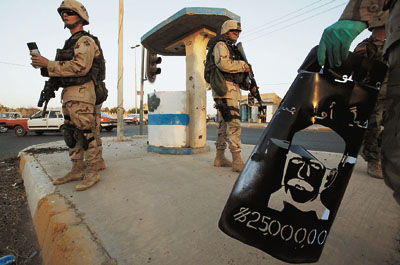 也就是在一個(gè)半月前,其時(shí)美軍已經(jīng)正式開始追捕時(shí),又有人在巴格達(dá)城發(fā)現(xiàn)了他的蹤影。當(dāng)時(shí)巴格達(dá)已經(jīng)是相當(dāng)危險(xiǎn):盟軍在進(jìn)行不間斷搜查、機(jī)動(dòng)車輛隨時(shí)都可都被擋截,大街上三步一哨,五步一崗,戒備森嚴(yán)。薩達(dá)姆想冒險(xiǎn)通過老的走私通道潛入北方,畢竟那里的親朋好友會(huì)多一些。