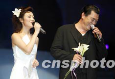 香港著名藝人“大傻”成奎安二十三日晚在2003年中國南昌新絲路模特大賽上擔當主持人,與當?shù)氐呐鞒秩送_亮相時似乎還有些“靦腆”。許多被內(nèi)地觀眾熟悉的香港藝人近年來頻頻北上,開拓內(nèi)地市場之勢強勁。中新社記者:毛建軍