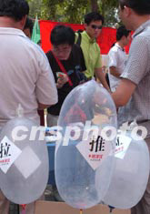 八月二十四日,北京一家避孕用品經(jīng)銷商在繁華的西單街頭向行人免費派送安全套,許多市民大膽接受,忸怩之態(tài)并不多見。中新社記者:張煒