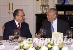 香港行政長官董建華(右)八月二十五日在禮賓府設宴招待羅馬尼亞總統揚伊利埃斯庫。中新社 圖