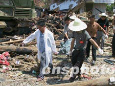 圖為搜救人員從現(xiàn)場(chǎng)抬出一具尸體。作者:劉可耕