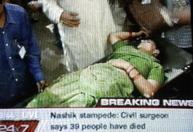 克里帕什安卡稱,數千名朝圣者齊聚馬哈拉什特拉邦納什科鎮,按照慣例他們將在附近的哥達瓦里河進行一種具有宗教色彩的“沐浴”,當大量人群沖進當地狹窄的街道向河岸跑時,發生了這一幕慘劇。