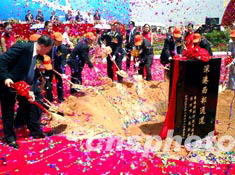 圖為中共中央政治局委員、國務(wù)院副總理曾培炎宣布深港西部通道動(dòng)工。