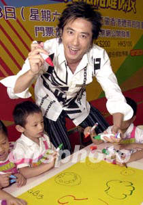 庾澄慶與保良局兒童繪畫心意咭。中新社記者:鄧慶樂