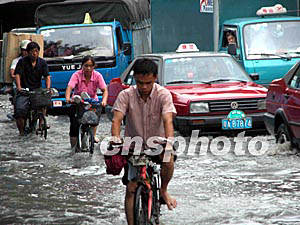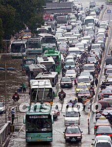 “杜鵑”臺風給廣州帶來了狂風暴雨,不少地方出現水淹現象,造成很多路段嚴重塞車。作者:梁永強