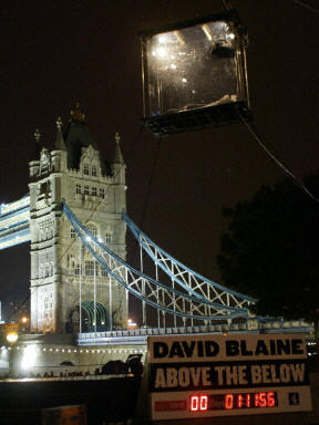 倫敦當(dāng)?shù)貢r間9月5日,美國30歲的魔術(shù)師大衛(wèi)·布萊恩開始了自己將持續(xù)44天的挑戰(zhàn)極限運動。他準(zhǔn)備在倫敦泰晤士河上懸掛的一個大玻璃箱子中,獨自度過44天不吃任何食物、只喝水的忍餓日子。
