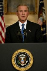 布什周日晚黃金時段在白宮發表十五分鐘的電視講話,闡述美國對伊政策。他沒能回答民眾關心的美軍何時從伊拉克撤回?伊拉克的大規模殺傷性武器在何方?薩達姆下落何處等問題。相反,布什把伊拉克描述成反恐中央前線,并有不惜代價,不達目的不罷休之意。