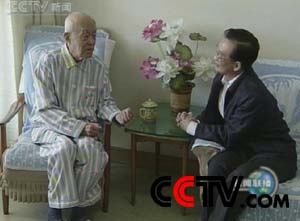 9時45分,溫家寶來到解放軍301醫院,看望正在這里住院治療的北京大學教授、93歲的季羨林先生。溫馨明亮的病房里擺放著鮮花和賀詩。溫家寶和季老親切攀談,關切地詢問他的病情和治療情況。溫家寶說,季老學貫中西,研究領域甚廣,在印度古代語言、佛教史、吐火羅文等學術領域都有很深造詣,在海內外享有盛譽,您淵博的學識和不斷創新的治學精神,堪稱學界楷模。當聽說季老住院期間還寫了一本散文集時,溫家寶說,我很喜歡您的散文,是您的熱心讀者。季老今天談興甚濃,他說,21世紀的中國前程似錦,溫家寶表示贊許。臨別時,溫家寶叮囑季老要保重身體,祝愿他健康長壽。