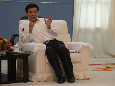 濟南市高新技術(shù)產(chǎn)業(yè)開發(fā)區(qū)管委會副主任王曉軍講解開發(fā)區(qū)發(fā)展情況。