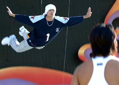 展現(xiàn)E時代新鮮感 周杰倫北京演唱會耍威風(fēng)(圖) (2003-09-08 09:23:11)
