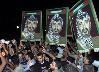 中新網9月12日電 法新社報道,作為對周二發生在以色列的兩起自殺爆炸事件的回應,以色列內閣原則上批準了強制驅逐巴勒斯坦領導人阿拉法特的決定,但就在同一時間,在約旦河西岸和加沙地帶,支持阿拉法特的呼聲日益高漲,74歲的阿拉法特本人也誓言他將永遠不會被以色列人活捉或是在以色列內閣的決定面前屈服。