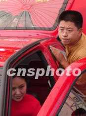 九月中旬,在北京軍事博物館舉行的汽車展銷會上,兩名參觀者神情專注地仔細打量一款價格適中的家庭轎車。據統計,中檔價位的家庭轎車成為本次車展的消費熱點。中新社記者:張煒