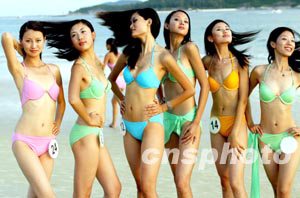 相關報道:圖:世界小姐中國總決賽參賽選手相聚天涯海角 (2003-09-17 20:51:26)