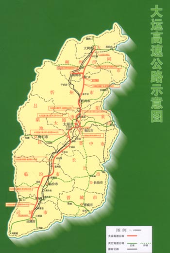 據(jù)介紹,到二零零五年,山西全省公路通車?yán)锍虒⑦_(dá)65000公里,高速公路2000公里,省會到各市(地)3小時高速通達(dá)。