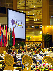 前來參加博鰲亞洲論壇永久會(huì)址揭幕典禮的代表,二十二日在新落成的會(huì)議中心舉辦博鰲亞洲論壇回顧與展望園桌會(huì)議。中新社記者 關(guān)向東 攝