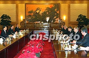 胡錦濤首先對上海合作組織總理會晤的成功舉行并取得重要成果表示祝賀。他說,這次會晤簽署及批準的《上海合作組織成員國多邊經貿合作綱要》等文件,為六國經濟合作奠定了重要法律基礎,必將進一步推動區域經濟合作,并為組織的兩個常設機構如期啟動創造有利條件。