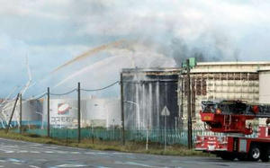 日本北海道東部海域發生強烈地震 一煉油廠失火。REUTERS/Kyodo
