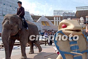 北京版《阿依達》不僅有來自國外的藝術家,更有與之相呼應的中國藝術家。他們包括中國一流的中央歌劇院交響樂團、北京交響樂團組成的150人的高水準交響樂團與歌劇演員、舞蹈演員、體操演員等組成的達4500人的規模空前的演出團隊。各種藝術元素如雜技、馬戲等表演手段融入其中,雄獅猛獸、老虎大象,作為動物演員登臺助陣,加上歐洲著名服裝道具設計師為此劇專門設計的萬余套服裝道具,把觀眾眼球都集中在了舞臺上。