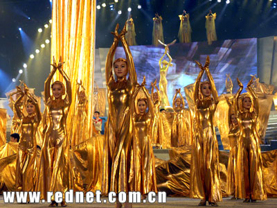 整臺晚會的核心是“中國年度電視禮贊”,通過情景劇、歌舞劇等各種演繹形式,《孝莊秘史》、《劉老根》、《DA師》、《中原突圍》等十部本年度中國最優(yōu)秀的電視作品被一一“微縮”到了舞臺之上。開局的解放軍戰(zhàn)士象古代輕功大師一樣在空中飛翔,以及重型坦克配合《DA師》情景劇緩緩駛上舞臺時,強(qiáng)烈的視覺沖擊博得了現(xiàn)場觀眾如雷的掌聲。