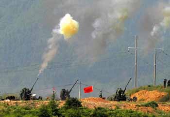南京軍區(qū)副司令員、軍區(qū)國動委常務副主任董萬瑞中將,福建省省長、省國動委主任盧展工,福建省軍區(qū)司令員、省國動委常務副主任張鶴田少將等近2000人參加了這次交流觀摩活動及實兵演練。