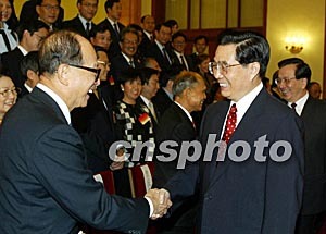 中新社北京九月二十七日電(記者邢利宇)中國(guó)國(guó)家主席胡錦濤今天下午在人民大會(huì)堂會(huì)見了以霍英東為團(tuán)長(zhǎng)的香港工商界知名人士訪京團(tuán)。