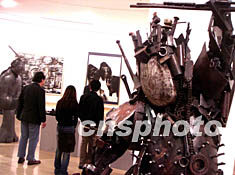北京金秋時節舉辦的首屆國際美術雙年展上,中國年青美術家運用多種鋼鐵材料焊接創作的古代將軍塑像,別具匠心。中新社記者:賈國榮