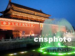 中新網9月30日電 從天安門城樓,到長安街兩側綠地;從金融街上奪目綻放的錦簇花球,到北京西站上流光溢彩的排簫造型;從二環路鱗次櫛比的高樓大廈,到三環路沿線初吐芳華的街燈……據北京日報報道,為迎接國慶54周年,北京的夜景照明從今夜開始,在“十一”期間全面開放。