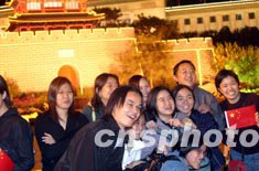 十月一日十國(guó)慶長(zhǎng)假第一天,當(dāng)晚有數(shù)萬(wàn)游客在北京天安門(mén)廣場(chǎng)觀看夜景。中新社記者:盛佳鵬