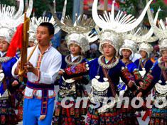 貴州省凱里市國慶期間舉行少數民族歌舞演出,慶祝國慶佳節。中新社記者:宋吉河