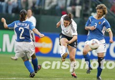 美國當(dāng)?shù)貢r(shí)間10月2日,2003女足世界杯德國隊(duì)與俄羅斯隊(duì)爭奪四強(qiáng)席位。德國隊(duì)發(fā)揮了體能好速度快的優(yōu)勢,以7比1大勝俄羅斯隊(duì),殺入四強(qiáng)。作者:劉占坤