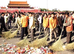 中新網10月4日電 據《京華時報》報道,由于游人“文明就差那么一點”,北京天安門廣場每天上10噸的垃圾讓環衛部門有些不堪重負。