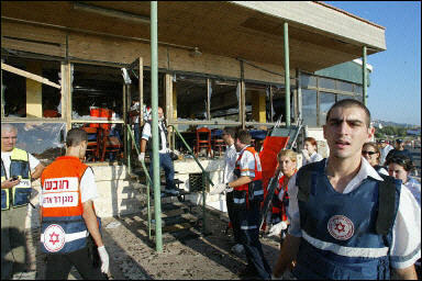 相關(guān)報道:以色列海法一餐館遭自殺爆炸 至少18死50余受傷 (2003-10-04 22:35:44)