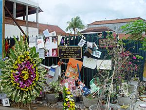 據介紹,巴厘島當局原打算在這塊空地上建一座紀念碑,但因有爭議,被擱置了下來。在街道左邊的小三角形地段,建筑工人正在鋪設路面。對面一座新商店已開始營業,臨近的“泛印尼銀行”還修筑了一道新圍墻,樓頂加蓋了藍瓦新頂。除了這塊尚不知作何用途的空地以外,爆炸案現場已漸漸和庫塔街融為一體。