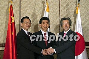 中新社巴厘島十月七日電(記者齊彬)中國國務院總理溫家寶、日本首相小泉純一郎、韓國總統盧武鉉七日在印度尼西亞巴厘島舉行了中日韓領導人第五次會晤,并發表聯合宣言,強調在貿易與投資、信息通信產業等領域拓展和深化合作。