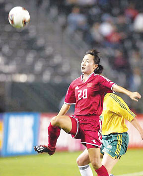 在上屆世界杯中,中國隊發(fā)揮出色,打進(jìn)決賽(半決賽5-0淘汰挪威);在決賽的點球大戰(zhàn)中,以4-5惜敗給美國隊痛失冠軍。由于中國隊的出色表現(xiàn),當(dāng)時總共有7名中國球員入選明星隊,她們是:前鋒孫雯,守門員高紅,后衛(wèi)王麗平,溫麗容,中場劉愛玲和趙麗紅,及前衛(wèi)金嫣。