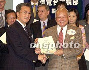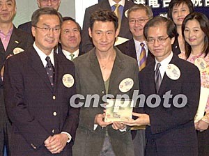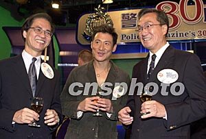 10月16日,香港電臺與警務處聯合制作的電視節目《警訊》舉行三十周年紀念典禮,警務處處長曾蔭培及廣播處長朱培慶與歌星張學友于活動上言談甚歡。作者:鄧慶樂