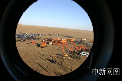 “神舟”五號載人飛船著陸現場。作者:孫陽