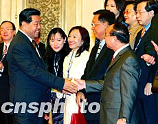 中新社北京十月二十一日電(記者邢利宇)中共中央政治局常委、全國(guó)政協(xié)主席賈慶林今天在人民大會(huì)堂會(huì)見(jiàn)了臺(tái)灣工商建研會(huì)、女企業(yè)家協(xié)會(huì)、農(nóng)漁業(yè)協(xié)會(huì)大陸經(jīng)貿(mào)考察團(tuán)。