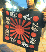 中新網(wǎng)10月23日電 據(jù)今日出版的《都市天地報(bào)》報(bào)道,本應(yīng)和“日本軍國(guó)主義”、“大東亞共榮圈”一起從中華大地上消失的代表侵略意義的“日本軍旗”,現(xiàn)在卻堂而皇之地出現(xiàn)在蘭州市的一些商鋪里,被當(dāng)做所謂“另類商品”出售。