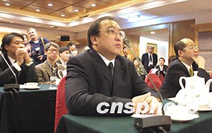 中國文化部副部長孟曉駟、中國廣電總局副局長趙實二十四日在北京貴賓樓飯店會見了來自香港的影視演藝界訪京團,雙方交流了關(guān)于大陸和香港文化發(fā)展的部分意見。圖為香港導(dǎo)演王晶(中)在見面會上。中新社記者:廖文靜