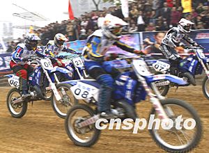 2003年“嘉陵杯”全國越野摩托車總決賽24日在重慶嘉陵賽車場拉開戰(zhàn)幕,來自全國21支隊伍120多名運(yùn)動員參賽,為爭取全年的總排名爭奪異常激烈。中新社記者:趙振清