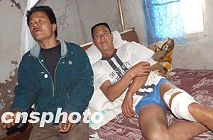 二十二日十一時(shí)左右,正在馬祖外公海捕漁的“閩連漁”2336號(hào)漁船遭遇馬祖海巡隊(duì)一艘海巡艇靠近查看。當(dāng)“閩連漁”2336號(hào)收完漁網(wǎng)返航時(shí),馬祖海巡艇上連續(xù)向“閩連漁”2336號(hào)船左舷和左駕駛艙開(kāi)了二十多槍?zhuān)瑔T陳理寶、黃自團(tuán)被子彈擊中左大腿。下午四時(shí)三十七分,“閩連漁”2336號(hào)返回連江,兩名受傷船員被送往丹陽(yáng)醫(yī)院搶救。圖為船長(zhǎng)劉錦濱(左)和受傷船員陳理寶講述當(dāng)時(shí)情形。作者:王浩東