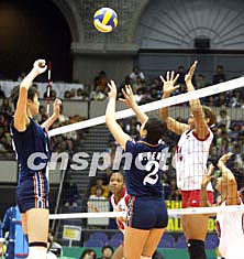 中國女子排球隊(duì)十一月三日下午在日本鹿兒島進(jìn)行的世界杯賽事中,直落三局輕取剛剛露出“黑馬”之相的多米尼加隊(duì)。中國女排拿手的快攻戰(zhàn)術(shù)令對手防不勝防。中新社記者:王健