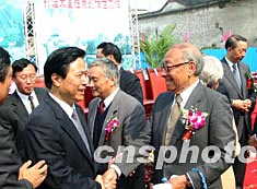 中新社蘇州十一月五日電(周建琳)由世界著名建筑大師貝聿銘設計的蘇州博物館新館奠基儀式今天舉行。遠道而來的貝聿銘等海內外嘉賓共同為蘇州博物館新館奠基培土。