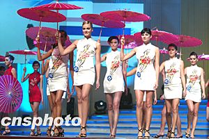 選手展示具有中國傳統色彩的現代旗袍裝。中新社記者 毛建軍 攝影