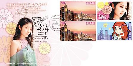 Kelly親自創(chuàng)作了兩款郵票,第一款選自其唱片專輯《愛》中的造型照;另一款則是配合這次大會主題旅游,特別邀請漫畫家義務(wù)繪畫卡通版Kelly游覽香港維港的構(gòu)圖。